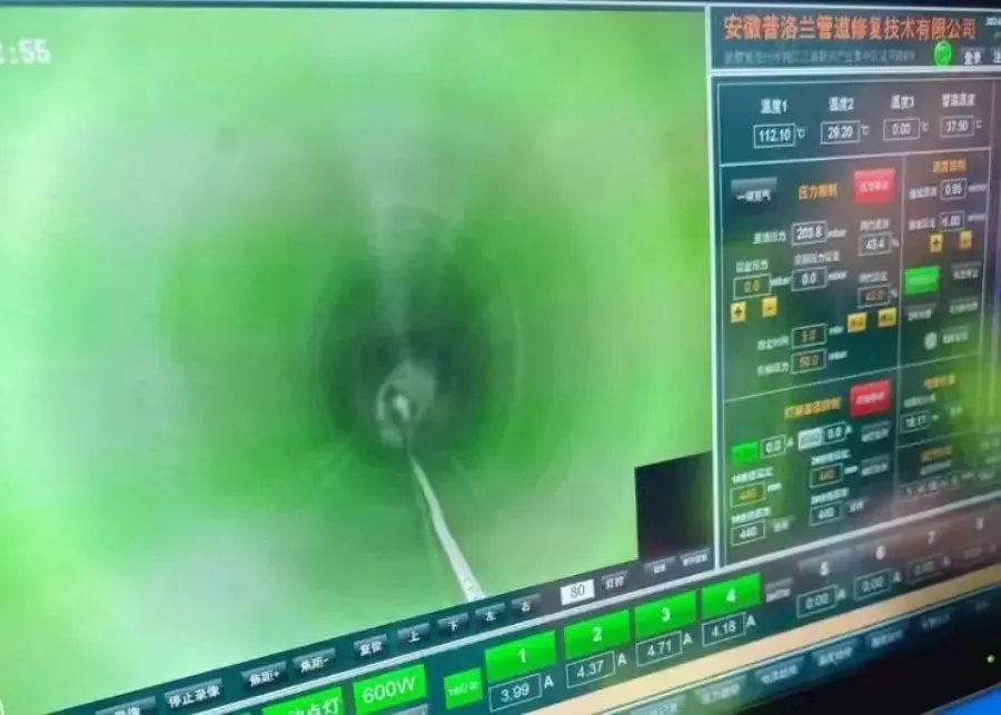 2. Working in water related environments: There was obvious flowing water in the repaired pipe, the bottom film entered the original pipe and floated on the surface of the accumulated water, making it unable to adhere to the original pipe. During the conventional UV-CIPP liner laying process, it was easy to detach from the bottom film and rub against the original pipe, resulting in liner damage and water ingress.