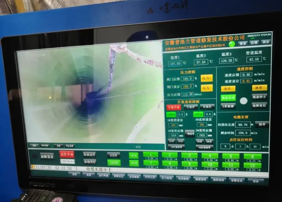 Single-section long-distance curing put extremely high requirements on the performance of our UV Curing system. Our UV Curing system was equipped with imported high-pressure ultraviolet lamps and power systems to ensure fast curing speed and good results. However, in actual operation, the curing distance of up to 260 meters posed a severe test to the continuous and stable operation of our UV Curing system. During the curing process,our UV Curing system must maintain stable performance to ensure that ultraviolet light can evenly cover the area to be repaired, which undoubtedly increased the complexity and risk of operation.