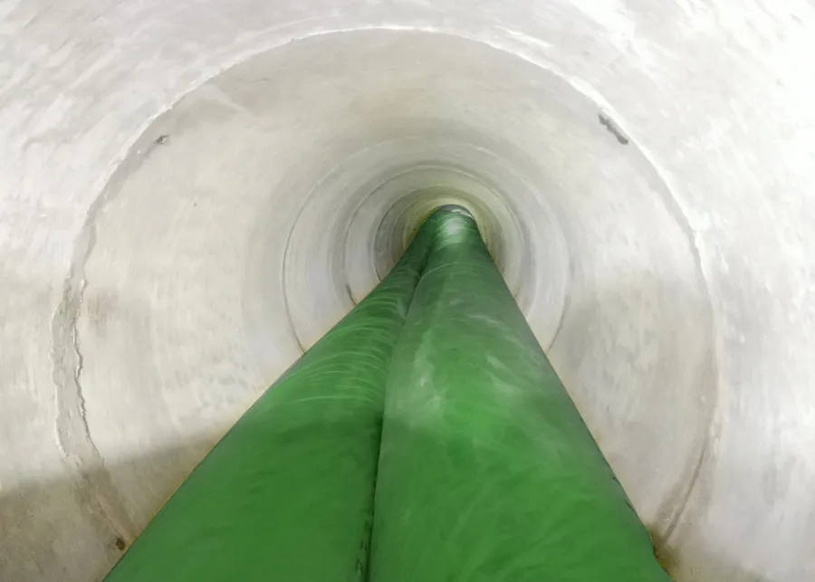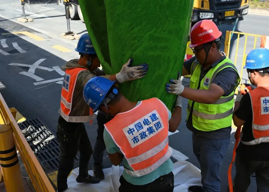 1. The wellhead was relatively small, and there was a displacement deviation between the pipe to be repaired and the wellhead. To prevent the outer membrane from being scratched during liners handling, we installed protective padding around the wellhead during construction. Additionally, due to the considerable width of the DN1800, we folded the liners multiple times to facilitate its entry into the well.