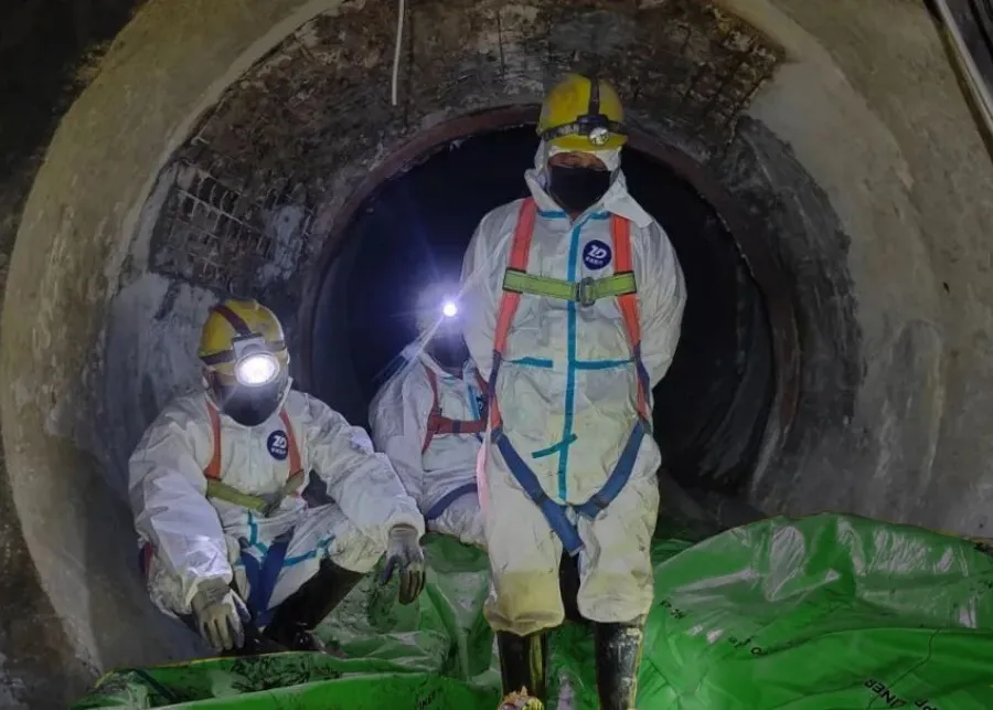 The pipe was buried at a depth of 6 meters, and there was severe water seepage in the well chamber and pipe wall, making it difficult to stop water. UV-CIPP liners with waterproof outer film was selected to ensure the successful implementation of this rehabilitation.